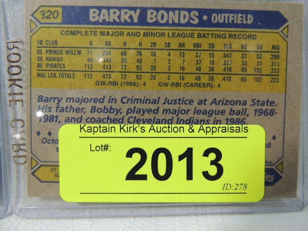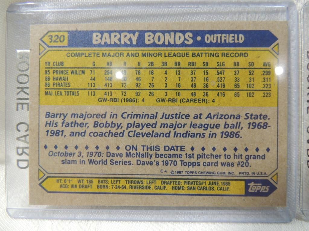 1987 TOPPS BARRY BONDS ROOKIE CARD # 320 BASEBALL PLAYER CARD. TRADING CARDS. BASEBALL COLLECTIBLE. AS SHOWN. SEE PHOTO FOR MORE DETAILS.
