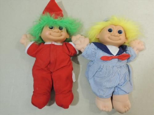 LOT 2 1990 RUSS 11" PLUSH ELF & BOY TROLL DOLL. AS SHOWN. VIEW PICTURE FOR DETAIL.