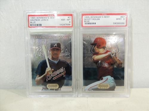 LOT 2 1995 BOWMAN #87 & 7 GRADED BASEBALL CARD: SCOTT ROLEN & ANDRUW JONES. AS SHOWN. VIEW PICTURE FOR DETAIL.