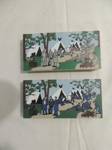 LOT 2 1997 CAT'S MEOW CIVIL WAR COLLECTION PAINTED WOOD BLOCKS. CONFEDERATE & YANKEE CAMPS. AS SHOWN. VIEW PICTURE FOR DETAIL.