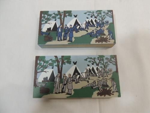 LOT 2 1997 CAT'S MEOW CIVIL WAR COLLECTION PAINTED WOOD BLOCKS. CONFEDERATE & YANKEE CAMPS. AS SHOWN. VIEW PICTURE FOR DETAIL.