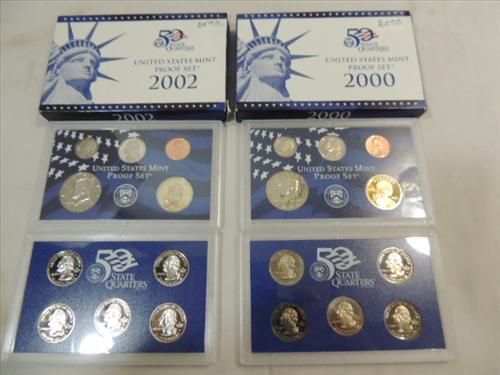 LOT 2 2000 & 02 UNITED STATES PROOF COIN SETS. AS SHOWN. VIEW PICTURE FOR DETAIL.