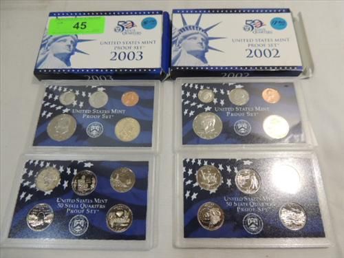 LOT 2 2002 & 03 UNITED STATES PROOF SETS. AS SHOWN. VIEW PICTURE FOR DETAIL.