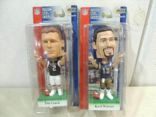 LOT 2 2002 PLAY MAKERS BOBBLE HEADS: TIM COUCH & KURT WARNER. AS SHOWN. VIEW PICTURE FOR DETAIL.