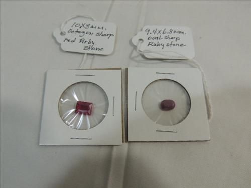 LOT 2 9.4X6.8 & 10X8MM OCTAGON & OVAL RUBY GEM STONES. AS SHOWN. VIEW PICTURE FOR DETAIL.