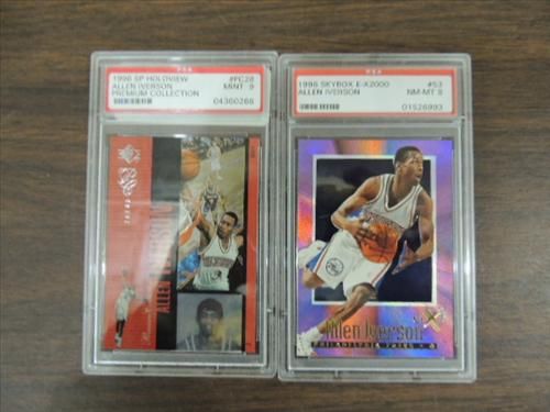 LOT 2 ALLEN IVERSON GRADED 1996 BASKETBALL CARDS: SP HOLOVIEW #PC28 MINT 9 & SKYBOX #53 NM-MT8. AS SHOWN. VIEW PICTURE FOR DETAIL.