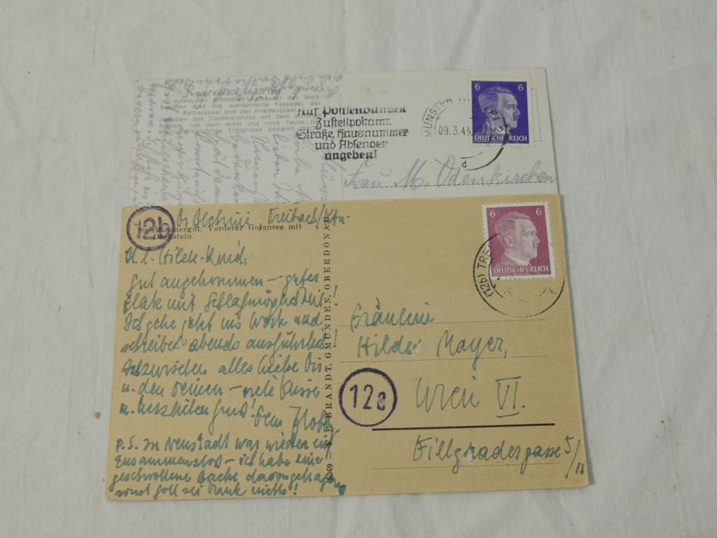 HAND WRITTEN POSTCARDS. ANTIQUE EURPOEAN. TRAVEL. PAPER COLLECTIBLES EPHEMERA POST CARDS. AS SHOWN. SEE PHOTO FOR MORE DETAILS. HITLER STAMP INCLUDED.