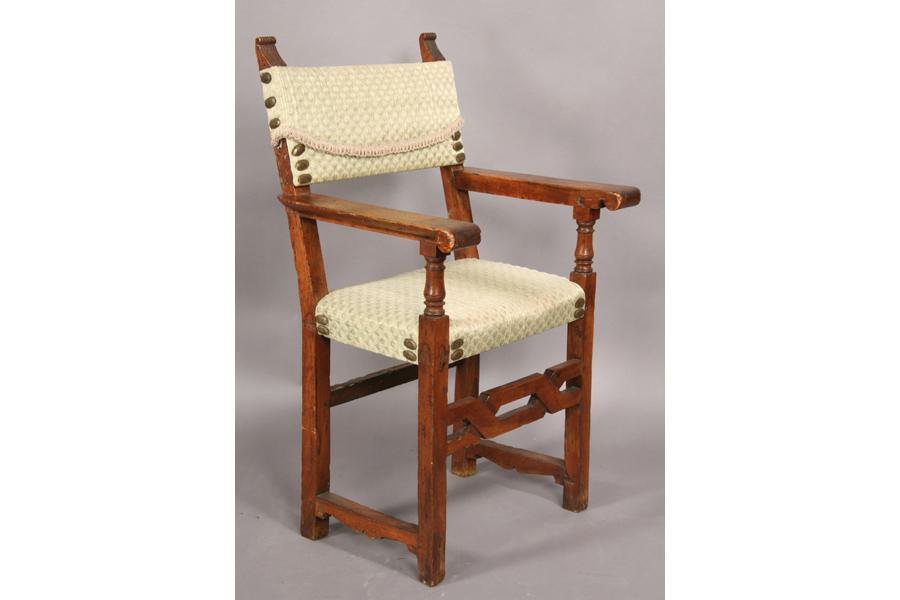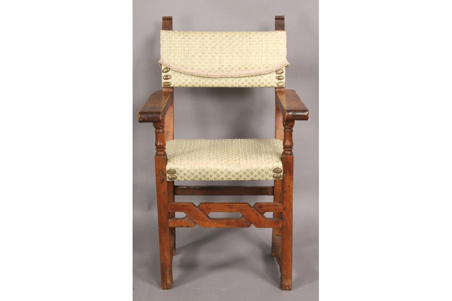 A lot of two antique Italian arm chairs. Each with fabric back and seat and having flat arms and scrolled knuckles 1790. Ht: 40" Width: 31" Depth: 22" ***PLEASE NOTE: All property shall be paid for by the purchaser within five (5) business days of the sale. Kamelot Auctions accepts cash (In house only), personal checks, certified checks and money orders. We do not accept credit cards or Paypal under any circumstances. Please note our policy regarding payments from International buyers: The only acceptable method of payment is a bank wire/bank transfer. For invoices more than $1000, there is no additional fee for this service. For invoices less than $1000, please include an additional $25 wire fee. We will be happy to forward our bank wiring information after the completion of the auction. Thank you for your understanding and cooperation. All purchases must be removed within 15 business days after an auction. Property not removed from our facility after 15 business days will be moved to an off-site storage facility at a charge of $10.00 per day payable by the buyer. Kamelot does NOT provide shipping services or estimates. However, we recommend the following independent shipping services: Antique Transport Co. at antiquetransport@cs.com, Farren Transport at farrentransport@comcast.net or All Points Shipping at jb@allpointsshippingnj.com for quotations and shipping arrangements for furniture and other large items that would require a blanket wrap shipping company. For quotations and shipping arrangements for smaller items that would traditionally be shipped through UPS, please contact The UPS Store at store4744@theupsstore.com or The Packaging Store at hrpa112@aol.com. Clients are welcome to pick up their items from our location or make their own shipping arrangements.