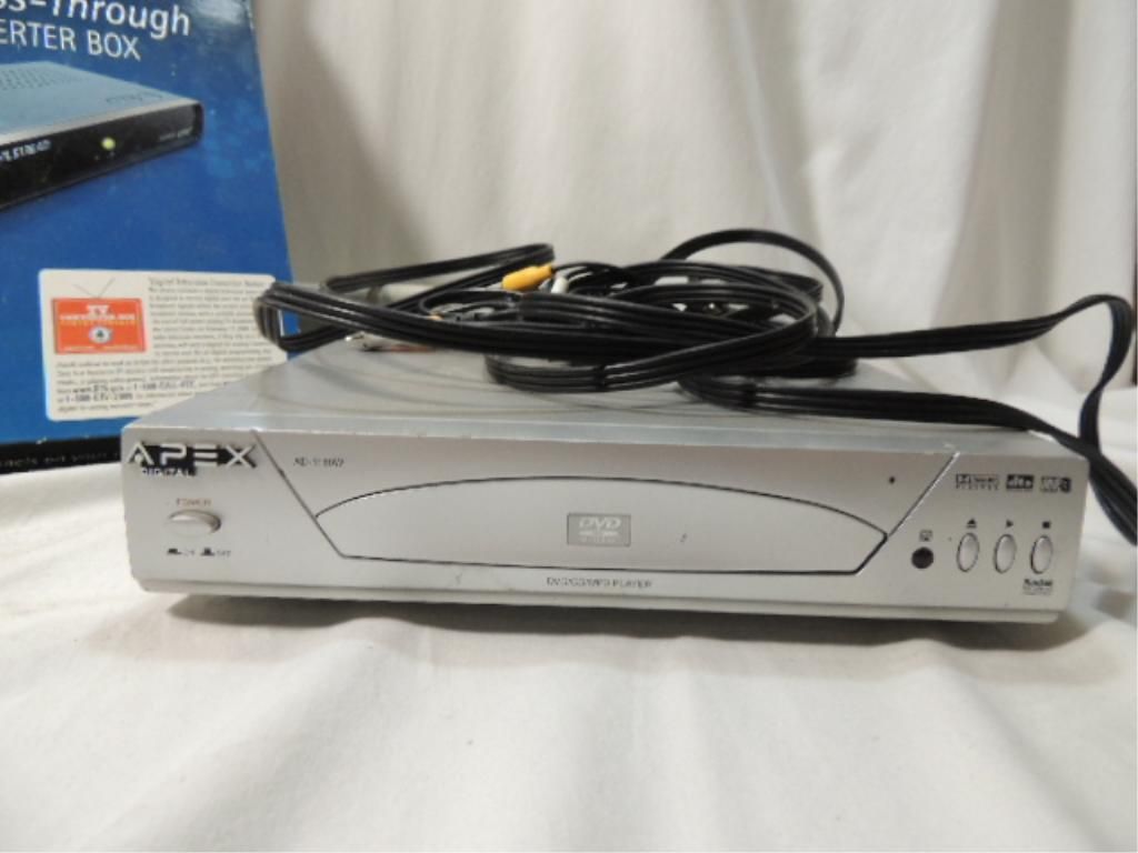 APEX DIGITAL DVD/CD/MP3 DVD PLAYER & ANALOG PASS-THROUGH DTV CONVERTER BOX. AS SHOWN. SEE PHOTO FOR MORE DETAILS.