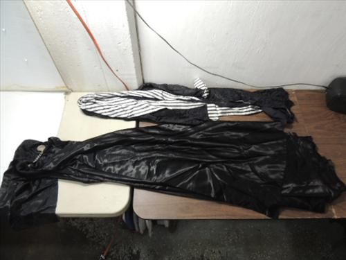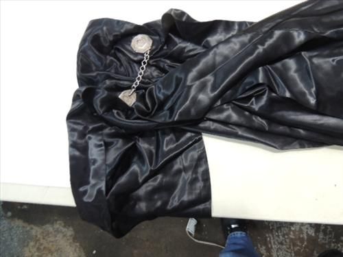 APOCALYPSE ROBE & HOOD. MADE OF SATIN & BLACK ROBE. AS SHOWN. VIEW PICTURE FOR DETAIL.