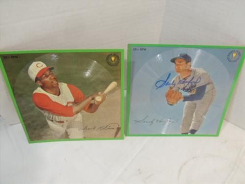 LOT 2 AURORAVISION BASEBALL 33 RPM RECORD FRANK ROBINSON & SANDY KOUFAX (KOUFAX RECORD IS AUTOGRAPHED NO COA). AS SHOWN. VIEW PICTURE FOR DETAIL.