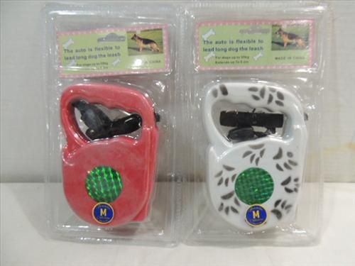 LOT 2 AUTO-RETRACTABLE DOG LEASHES - UP TO 15'. AS SHOWN. VIEW PICTURE FOR DETAIL.