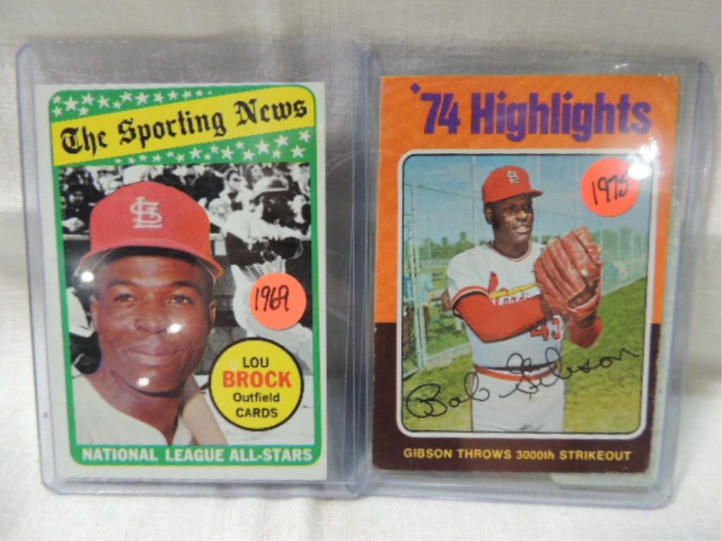 LOT 2 BASEBALL PLAYERS CARDS. 1969 SPORTING NEWS LOU BROCK 1975 BOB GIBSON