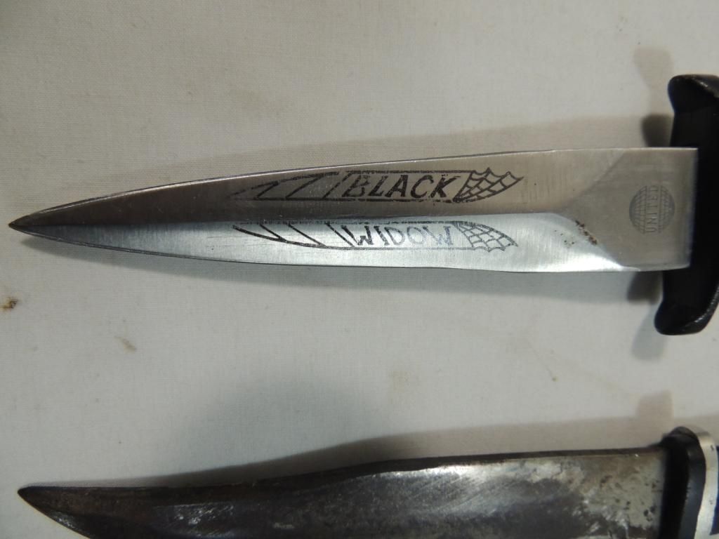 BLACK WIDOW DAGGER KNIFE, STAINLESS STEEL BLADE HEAVY HANDLE WEB DESIGN, VINTAGE KNIFE, DIVING KNIFE, RARE. COLLECTIBLE. AS SHOWN SEE PHOTO FO RMORE DETAILS