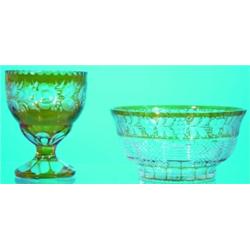 LOT 2 BOHEMIAN GLASS ITEMS-(1) Bohemian engraved amber compote. H-6 1/2", VG-EX. (1) Bohemian eng...