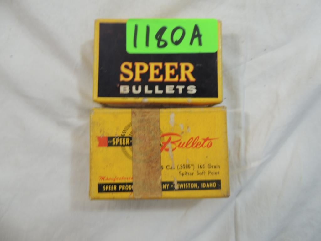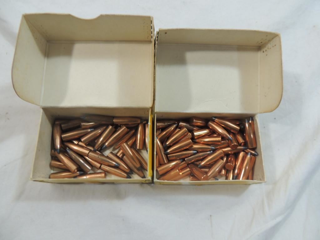 30 CAL. .308" DIA. 165 GR. SPITZER, ONE BOX IS FULL, OTHER IS HALF FULL, BULLETS, GUN ACCESSORIES, AMMUNITION, AS SHOWN SEE PHOTO FOR MORE DETAILS.