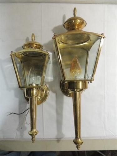 LOT 2 BRASS EXTERIOR WALL MOUNTING LIGHTS 17", 21"