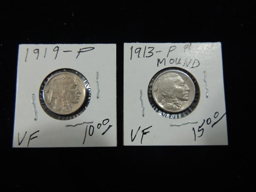 1919 & 1913 BUFFALO NICKELS UNITED STATES COIN COLLECTIBLE. US CURRENCY. COLLECTORS COINS. TREASURY. AS SHOWN SEE PHOTO FOR MORE DETAILS.