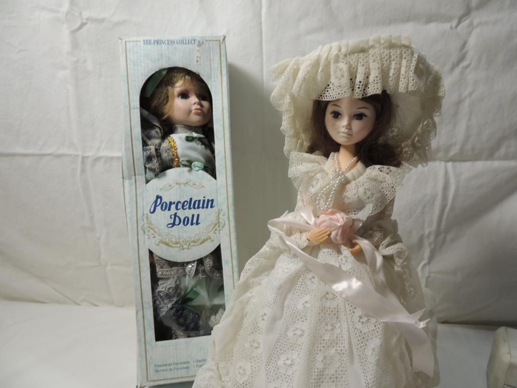 PORCELAIN DOLL AND BRADLEY DOLL. COLLECTIBLE. AS SHOWN. SEE PHOTO FOR MORE DETAILS.