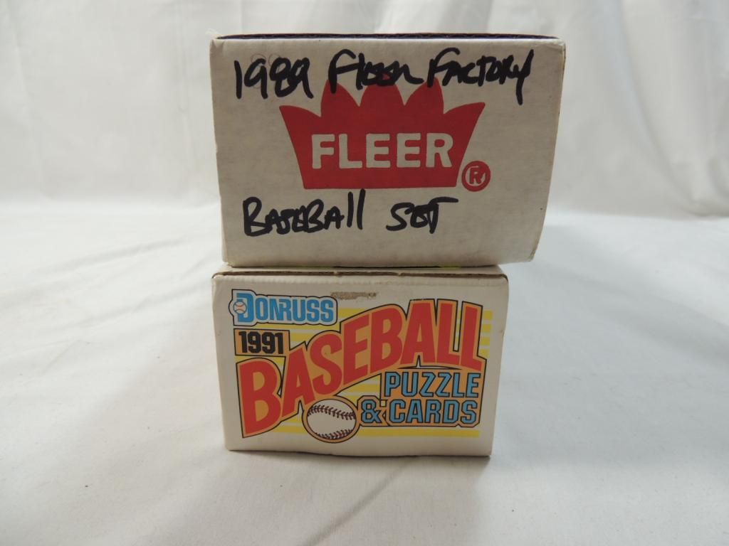 1991 DONRUSS BASEBALL PUZZLE AND CARDS. 1989 FLEER FACTORY BASEBALL SET. FACTORY SEAL. AS SHOWN. SEE PHOTO FOR DETAILS.