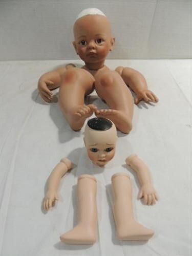 LOT 2 COMPLETE PROCELAIN DOLL PARTS MARKED: AEL 2003 & 1993. HEAD, ARMS & LEGS. AS SHOWN. VIEW PICTURE FOR DETAIL.