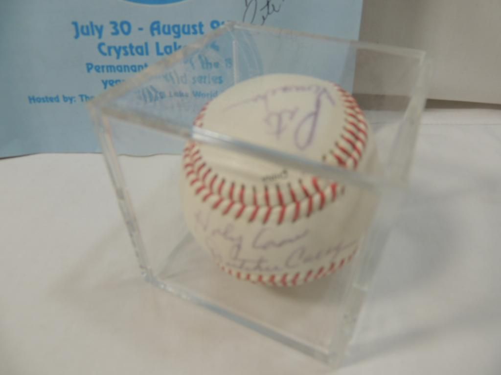 LOT 2 DUTCHIE CARAY AND PETE VONACHEN AUTOGRAPHED BASEBALL AND PROGRAM. NO COA. AS SHOWN SEE PHOTO FOR MORE DETAILS. PLEASE BE ADVISED, AND INFORMED REGARDING SIGNATURES OR AUTOGRAPHS THAT WE SELL AT AUCTION: WE ARE NOT AUTHENTICATORS, AND WE DO NOT AUTHENTICATE, OR VALIDATE ANY AUTOGRAPHS OR SIGNATURES THAT WE OFFER AT AUCTION. SOME AUTOGRAPHS OR SIGNATURES MAY COME WITH AN AUTHENTICATION FROM ANY ONE OF LITERALLY HUNDREDS OF AUTHENTICATORS ACROSS THE COUNTRY, AND AROUND THE WORLD. WE DO NOT ENDORSE ANY AUTHENTICATOR, NOR DO WE GUARANTEE THAT ANY AUTOGRAPH OR SIGNATURE IS AUTHENTIC, OR THAT IT WILL PASS AUTHENTICATION BY ANY AUTHENTICATOR. ALL AUTOGRAPHS OR SIGNATURES ARE SOLD