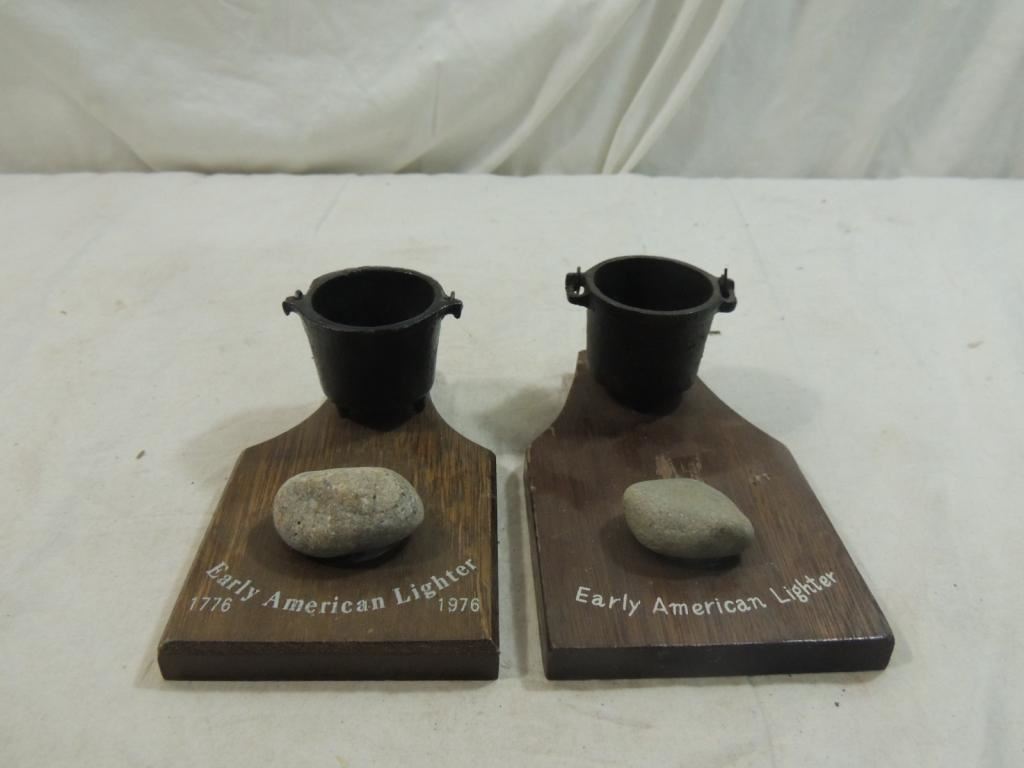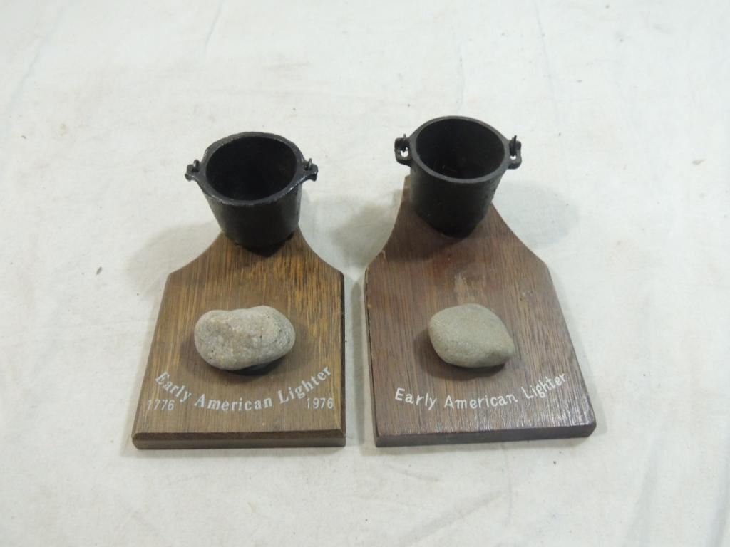 EARLY AMERICAN NOVELITY LIGHTER NOVELITY LIGHTER, CULTRON AND ROCK ON WOOD, DECORATIVE FUNNY AS SHOWN SEE PHOTO FOR MORE DETAILS.
