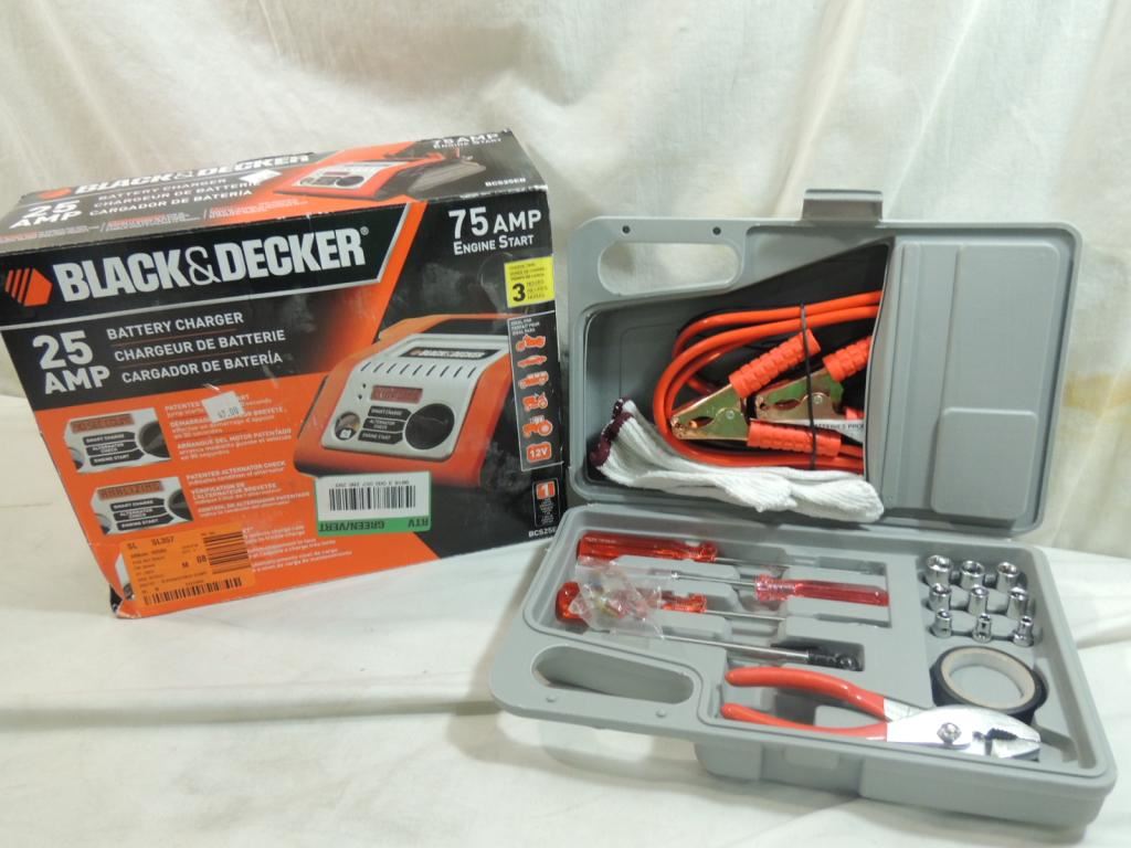 BLACK & DECKER 25AMP BATTERY CHARGER & EMERGANCY ROADSIDE KIT AS SHOWN SEE PHOTO FOR MORE DETAILS.