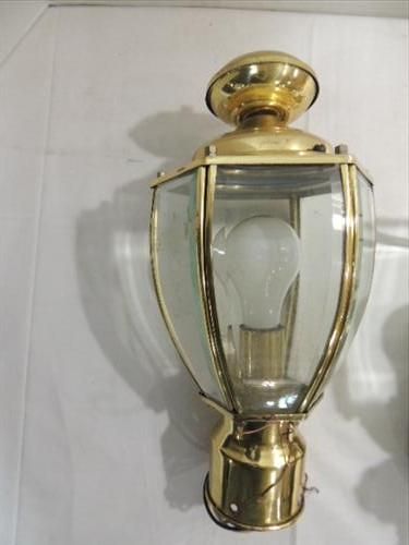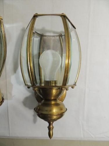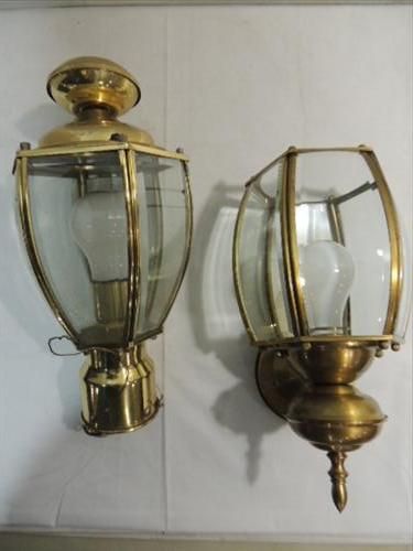 LOT 2 EXTERIOR LIGHTING: 1 LAMP POST BRASS LIGHT & 1 WALL MOUNT BRASS LIGHT. BEVELED GLASS. AS SHOWN. VIEW PICTURE FOR DETAIL.