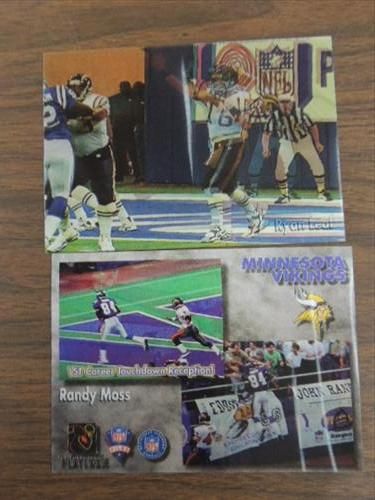 LOT 2 FOOTBALL ACTION MOTION CARD RANDY MOSS & RYAN LEAF. AS SHOWN. VIEW PICTURE FOR DETAIL.