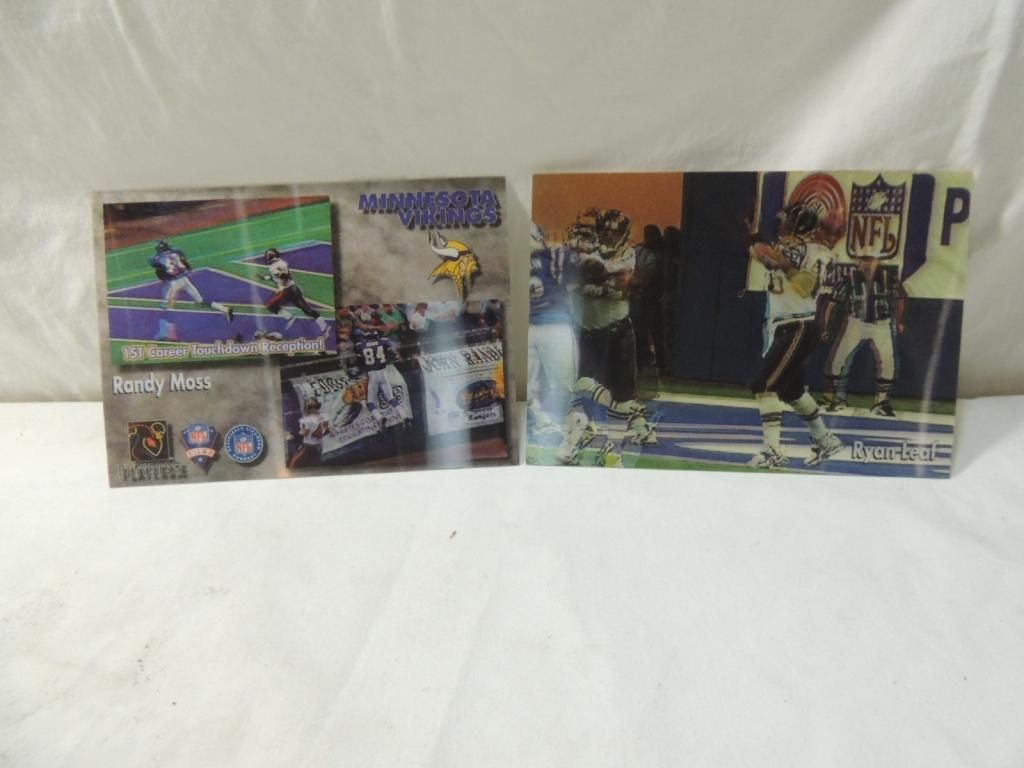 LOT 2 FOOTBALL ACTION MOTION CARD RANDY MOSS & RYAN LEAF. AS SHOWN. VIEW PICTURE FOR DETAIL.
