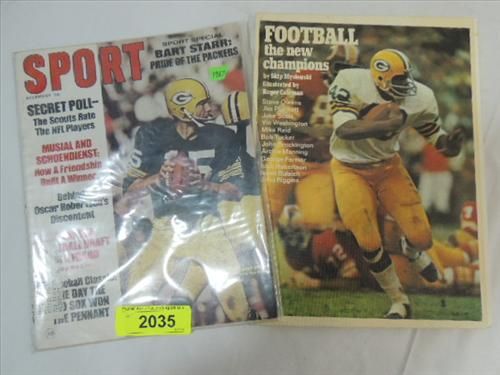 LOT 2 FOOTBALL EMPHERIA: 1967 SPORTS MAGAZINE - BART STARR & BOOK FOOTBALL THE NEW CHAMPIONS. AS SHOWN. VIEW PICTURE FOR DETAIL.
