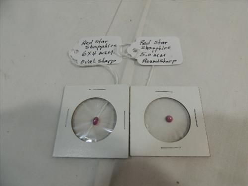 LOT 2 GEM STONE OVAL 6X4MM & ROUND 5MM CUT RED LINDY STAR SAPPHIRE. AS SHOWN. VIEW PICTURE FOR DETAIL.