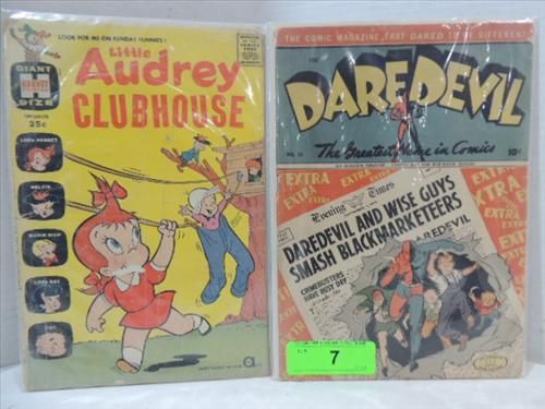 LOT 2 GOLDEN AGE 1945 COMIC #32 DAREDEVIL GREAT CONDITION & HARVEY COMIC LITTLE AUDREY CONDITONAL ISSUES. AS SHOWN. VIEW PICTURE FOR DETAIL.