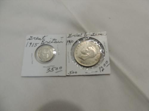 LOT 2 GREAT BRITIAN COINS 1915 SIX PENCE & 1940 HALF CROWN. AS SHOWN. VIEW PICTURE FOR DETAIL.