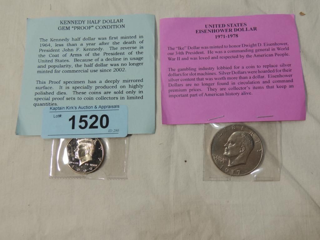 KENNEDY HALF DOLLAR GEM "PROOF" CONDITION. UNITED STATES EISENHOWER DOLLAR. AS SHOWN. SEE PHOTO FOR MORE DETAILS.
