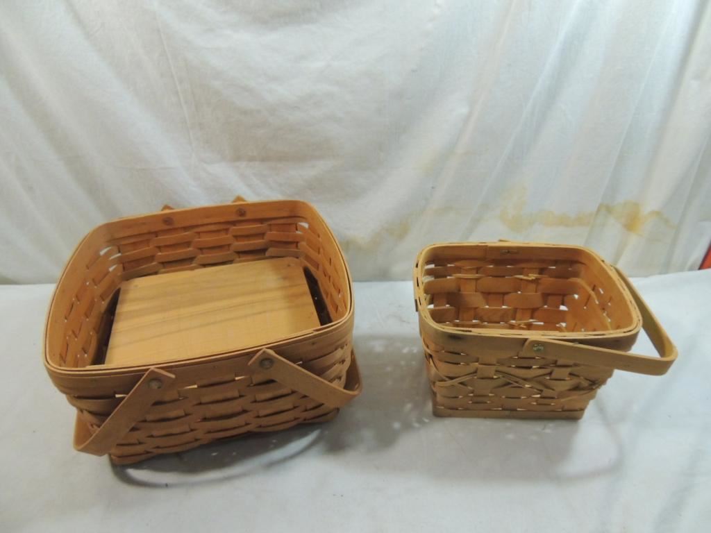 WOVEN BASKETS, DECORATIVE BASKETS, VINTAGE BASKETS, DISPLAY BASKETS, STORAGE BASKETS, LONGABERGER BASKETS, AS SHOWN SEE PHOTO FOR MORE DETAILS.