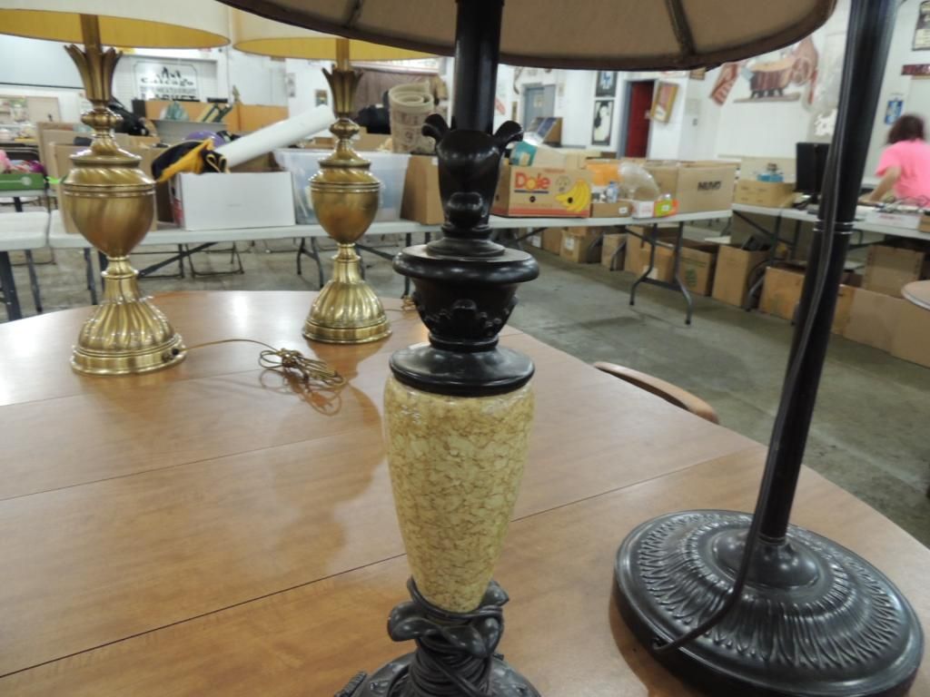 DECORATIVE FLOOR LAMP AND TABLE LAMP MATCHING. ELEGANT LAMPS CREAM SHADE. TRADITIONAL LAMPS. AS SHOWN SEE PHOTO FOR MORE DETAILS.
