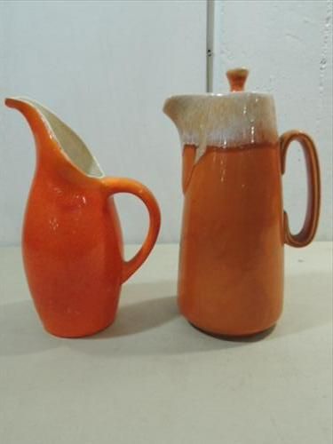 LOT 2 MID-CENTURY MODERN CERAMIC PITCHERS: (1) MARKED USA. AS SHOWN. VIEW PICTURE FOR DETAIL.