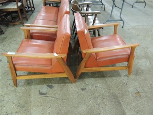 LOT 2 MID-CENTURY MODERN 1950S MAHOGANY CUSHIONED CHAIRS