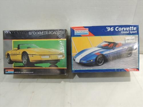 MONOGRAM PLASTIC MODEL KIT 1987 CORVETTE ROADSTER & 1996 CORVETTE GRAND SPORT. 1/24 SCALE. NEW IN BOX UNOPENED. AS SHOWN. VIEW PICTURE FOR DETAIL.