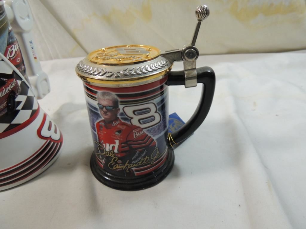 CERAMIC BEER STEIN 2001 LIMITED EDITION STEIN, HAND CRAFTED EXPRESSLY FOR ANHEUSER BUSH BUD #8, LIDDED TANKARD 1999 INAUGURAL SEASON COMMEMORATIVE BEER TANKARD AS SHOWN SEE PHOTO FOR MORE DETAILS.