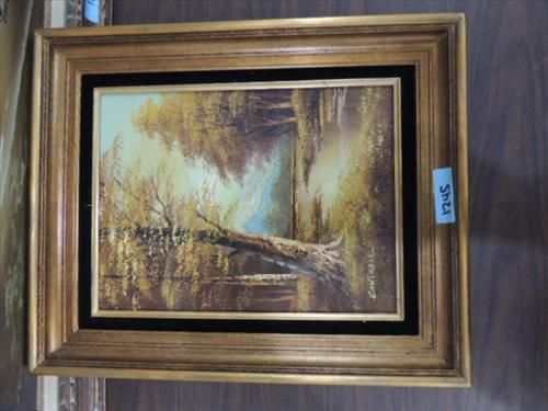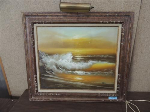 LOT 2 PROFESSIONALLY FRAMED ORIGINAL OIL PAINTIGS SEA SCAPE & FOREST: ARTIST STEVENS & CANTRELL. 32X28 IS LIGHTED. AS SHOWN. VIEW PICTURE FOR DETAIL.