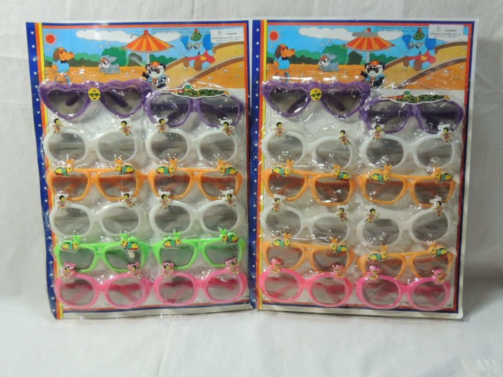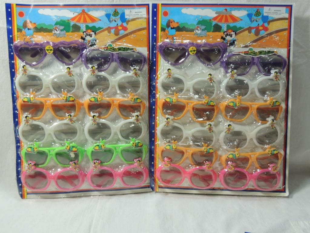 SUNGLASSES SUN GLASSES TOY GLASSES PLASTIC GLASSES. NEW SEALED PACKS. 12 PAIRS IN EACH SET AS SHOWN. SEE PHOTO FOR MORE DETAILS.