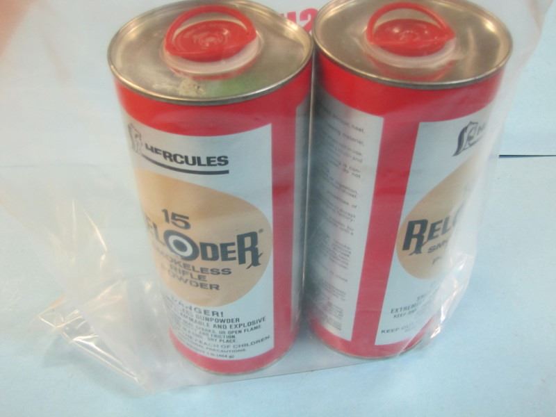 LOT 2 PART CANS NO. 15 RELOADER SMOKELESS RIFLE POWDER