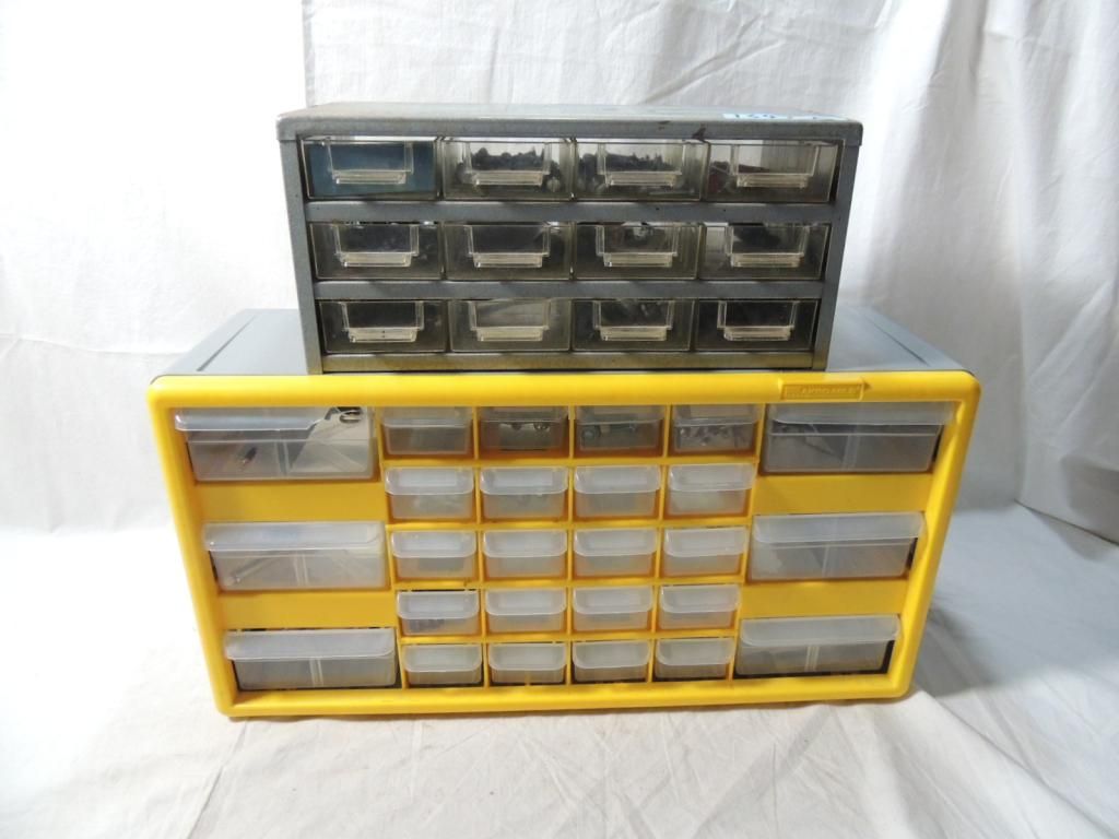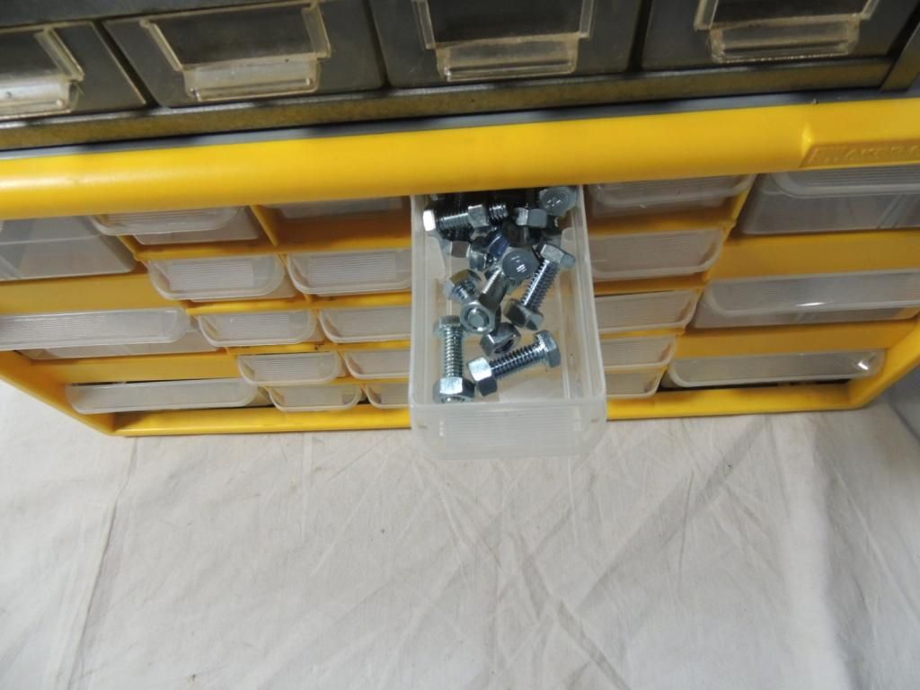 ASSORTED SCREWS BOLTS, NAILS, DRIL BITS, SMALL PARTS ORGANIZER. AS SHOWN.SEE PHOTO FOR MORE DETAILS