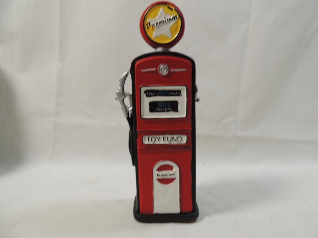 PETROL STATION COIN BANKPETROL STATION COIN BANK. NEW IN BOX. DECORATIVE VINTAGE PETROL STATION STYLE COIN BANK. AS SHOWN. SEE PHOTO FOR MORE DETAILS.