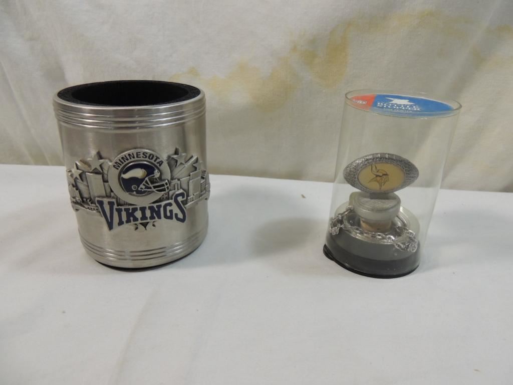 FINE PEWTER CAN COZY MINNESOTA VIKINGS, COLLECTIBLE BOTTLE STOPPER VIKINGS AS SHOWN SEE PHOTO FOR MORE DETAILS.