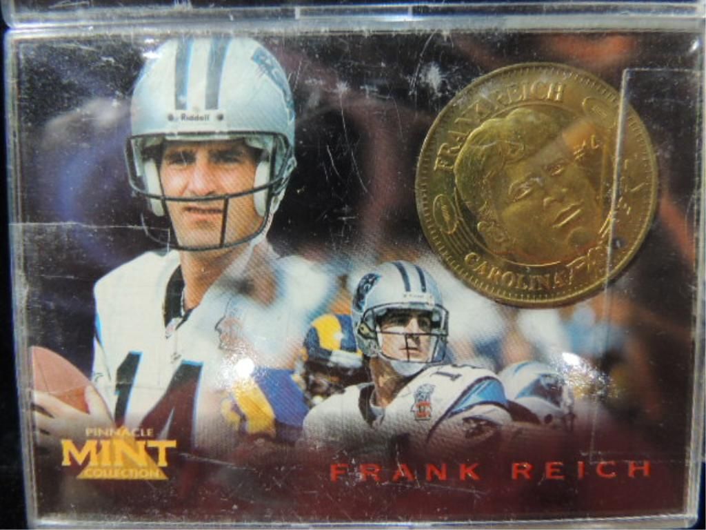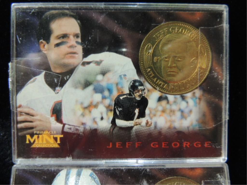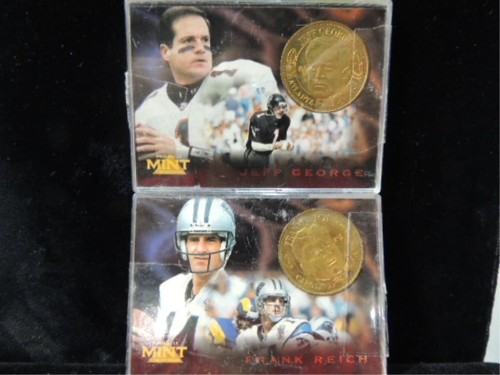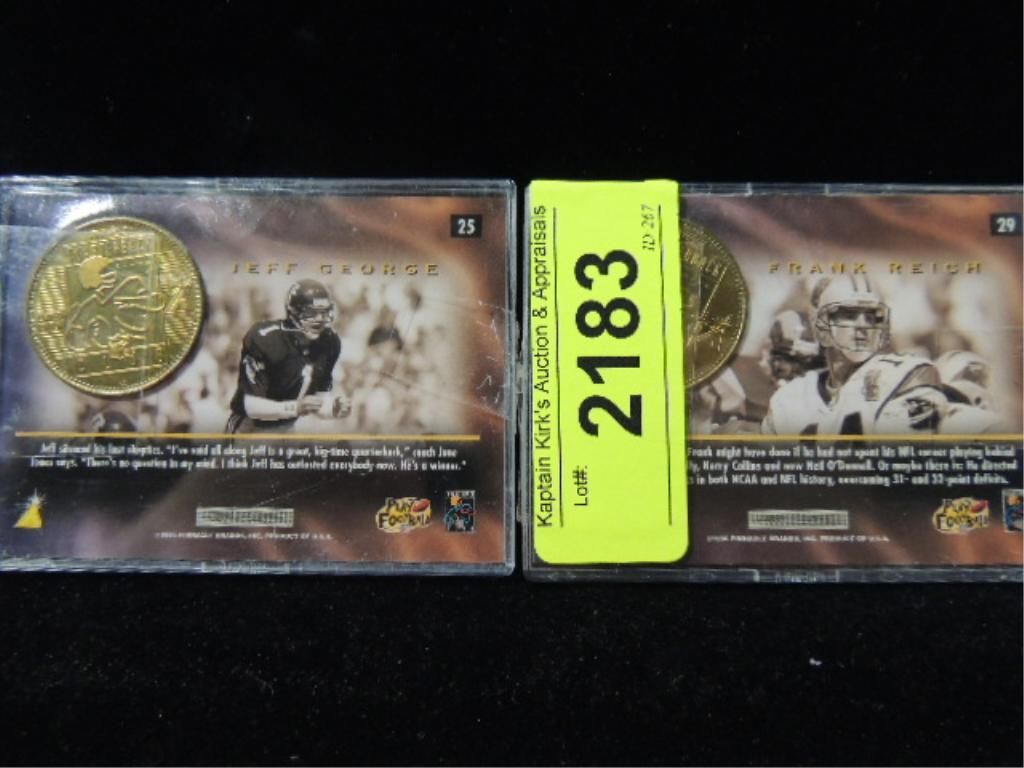 JEFF GEORGE & FRANK REICH FOOTBALL PLAYER COINS. FOOTBALL PLAYER CARD. AS SHOWN. SEE PHOTO FOR MORE DETAILS.