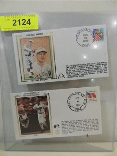 LOT 2 POSTAGE ENVELOPE BASEBALL PLAYERS GEORGE SISLER & CAL RIPKEN JR. AS SHOWN. VIEW PICTURE FOR DETAIL.